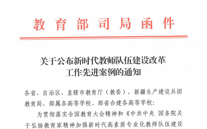 近日,教育部公布新时代教师队伍建设改革工作先进案例,我校申报的《“156教师发展体系构建的实践与探索》成功入选,全国共98项。该案例也是健全高校教师发展支持服务体系领域两个典型案例之一。