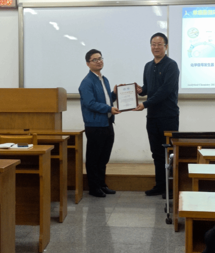 图2. 覃开荣书记为主讲嘉宾颁发“青年学者发展论坛”纪念证书