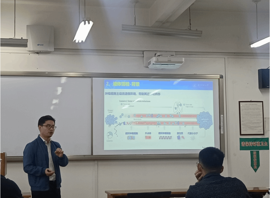 论坛由大连理工大学医学部生物医学工程学院朱进波教授主持,邀请华中科技大学生命与科学技术学院陈鹏副教授为主讲嘉宾做“微流控芯片与生物医学检测”报告。陈鹏副教授分享了微流控芯片技术在细胞微环境操控、液体活检、单细胞分析、微生物检测等方面的应用。