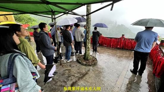 参观都江堰水利工程期间,学员们冒雨前往都江堰上游的紫坪铺水库大坝。2008年汶川地震后,我校时年79岁林皋院士毅然六次赴震区参加紫坪铺水库大坝会诊,对大坝的抗震能力、检测标准、加固措施等提出权威意见,确保了紫坪铺水库大坝的安全运行。林院士坚定科技报国情怀,推动我国大坝抗震研究跻身世界前列的感人事迹,深深的鼓舞了大家。