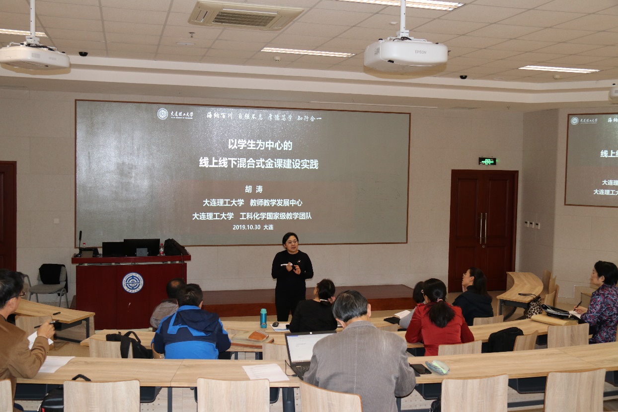 应教师教学发展中心邀请,10月30日我校化工学院胡涛教授在经管学院楼B111教室做“以学生为中心的线上线下混合式金课建设实践”主题智慧教学培训,来自六个学部学院的一线教师参加了本次活动。