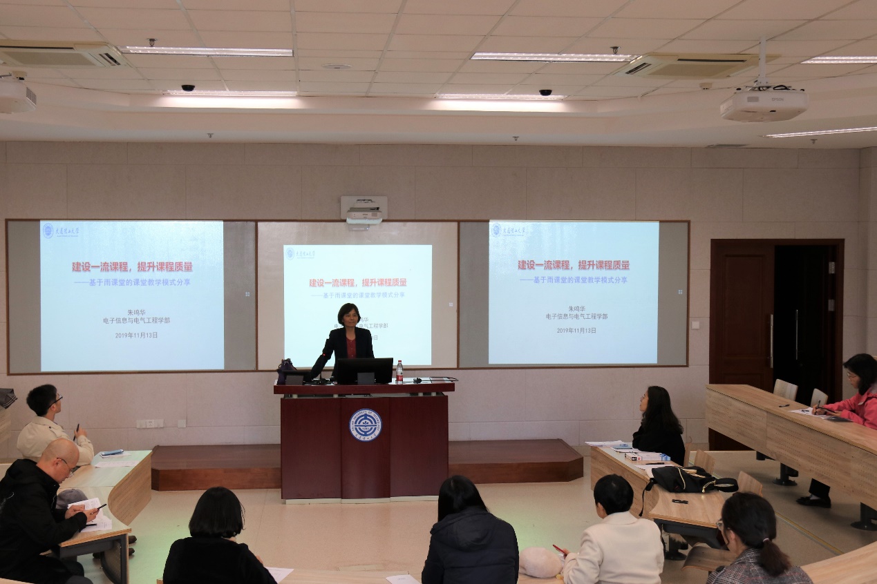 为探索课堂教学创新模式与方法,助力我校一流课程建设,教师教学发展中心于11月13日举办本学期第五期智慧教学工作坊。教育部宝钢优秀教师奖获得者、辽宁省、电子信息与电气工程学部资深教授朱鸣华老师应邀为我校一线教师做“建设一流课程,提升课程质量---基于雨课堂的课堂教学模式分享”主题讲座。