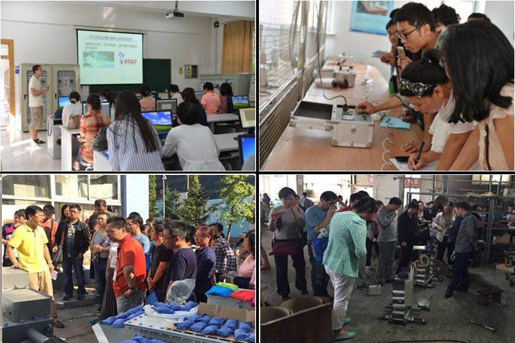 此次培训的工程实训安排在大连理工大学电气工程实验室及国家级示范中心电工电子专业实验室进行。根据实训安排,参训教师分别进行了电力系统模块、电机拖动模块、高电压技术模块、电磁场模块和电工电子等实验环节的培训。培训教师还参观了大连碧海电子设备有限公司,了解了静电除尘器用高压整流变压器的生产流水线,包括低压绕组绕制,高压绕组绕制,铁芯的压制,绕组的组装,变压器的组装,变压器油的净化,变压器的性能检测,加深了对变压器以及生产工艺流程的认识。