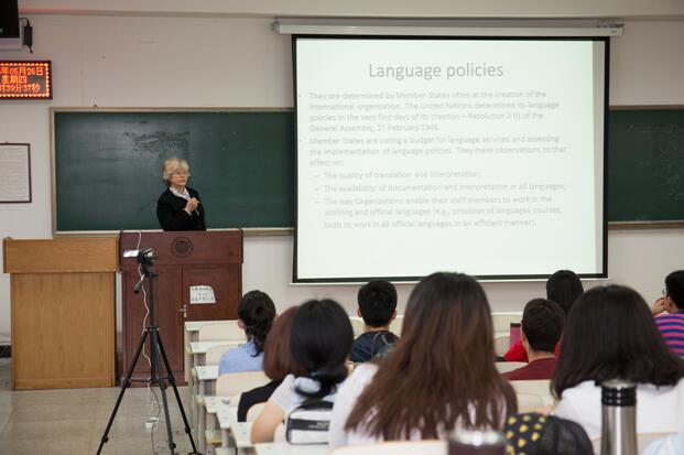 5月26日,应教师教学发展中心和外国语学院的邀请,曾在联合国术语与翻译部门任职35年的Marie-Josée de Saint Robert博士在研教楼304为全校师生做了题为“What is Needed to be a Good Translator or an Interpreter in International Organizations? ”的讲座。讲座由外国语学院分管教学工作的副院长李秀英教授主持。
