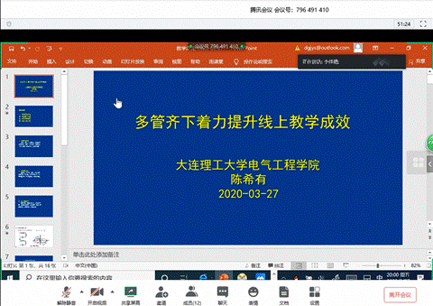 3月27日晚8点,第三十一期教学沙龙如期与广大教师在网络平台见面。本期活动邀请辽宁省、电子信息与电气工程学部陈希有教授担任主讲人,与一线教师围绕“多管齐下 着力提升线上教学成效”展开深入交流。