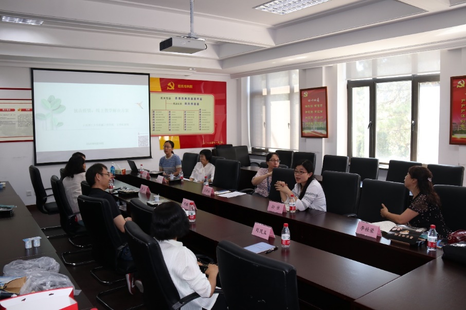 针对疫情期间的在线教学,王丹虹老师认为慕课资源和线上测试是提高线上教学质量的重要保障。课程视频内容是否精炼、脉络是否清晰、重难点讲解是否到位,对学生学习效果有极大影响。线上测试目的实际在于促进学生学习,不单只是课程考核的方式,教师预设题库要丰富,并给学生提供多次、反复练习的条件。参会教师同王丹虹老师就相关问题展开了热烈的讨论,大家互相分享线上教学过程中的妙招,现场气氛热烈。
