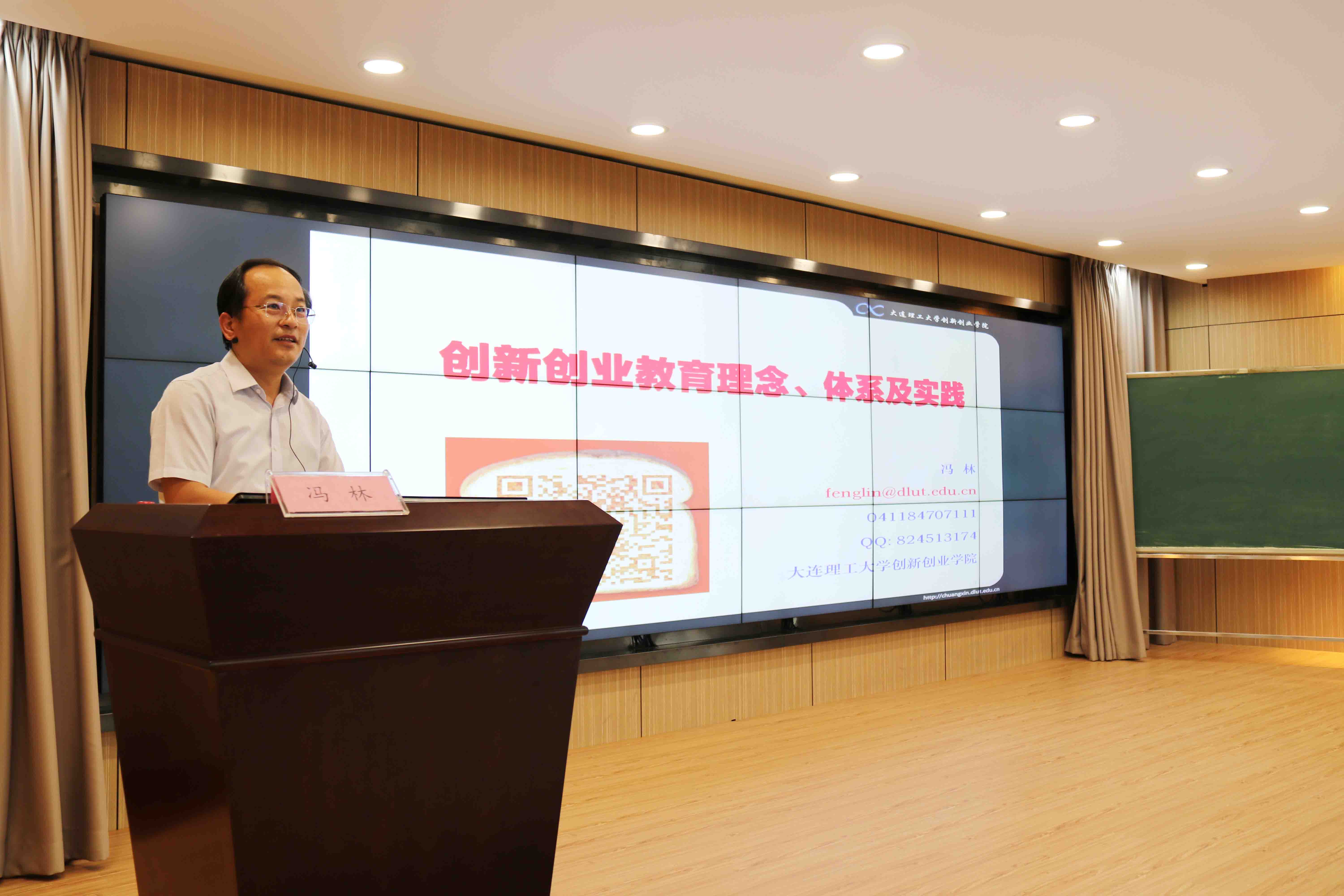 大连理工大学教师教学发展中心主任、教育部创新方法教学指导分委员会副主任委员、教育部创新创业教育研究中心学术委员会委员冯林教授,应邀作了《创新创业教育理念、体系及实践》的主题报告。报告从创新创业教育背景、什么是创新创业教育,怎么开展创新创业教育等几个方面做了深入探讨,特别是针对目前创新创业教育领域存在的误区、产生的问题和教学现状进行了深刻反思。最后,冯林教授对我校创新创业教育开展情况进行了简要介绍,分享了近些年的工作经验和创新做法。