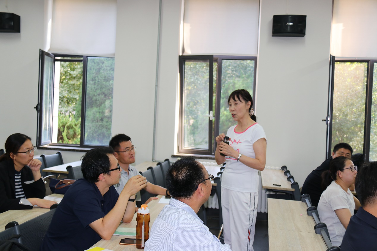 讲座结束后,余虹教授围绕知识点设计、课堂效果等方面与参会教师展开了热烈的交流研讨。余虹教授鼓励广大青年教师积极投身教学,用心用情拉进与学生的距离,育人育心,培养塑造具有新时代灵魂的大国工匠。